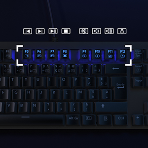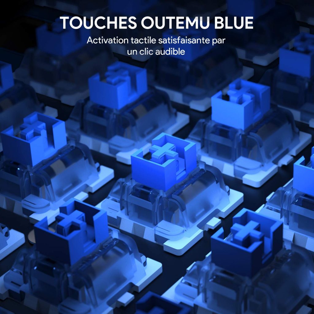 Le clavier KM-G6 vous propose comme je l’ai précédemment indiqué, 105 touches avec des switchs bleues, ce qui vous permettra de profiter d’une grande rapidité lors de son utilisation.
