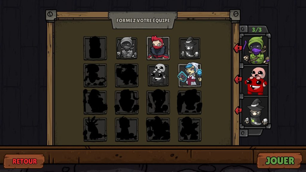 Pour commencer, comme vous pouvez le voir sur l’image ci-dessus, il vous suffira évidemment de cliquer sur jouer ou alors d’accéder aux paramètres puis vous allez avoir à sélectionner une sauvegarde si vous avez déjà créé une partie, ensuite vous allez tomber sur cette page (voir photo ci-dessous) où il faudra choisir votre équipe c’est à dire cliquer sur les alliées que vous souhaitez pouvoir invoquer à l’aide de votre guitare, évidemment au début du jeu vous n’aurez accès qu’à trois personnages de base mais au fil du temps vous allez pouvoir en débloquez bien plus !