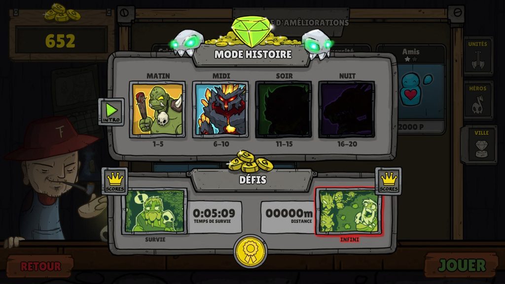 pour terminer, il faut que vous sachiez qu’il existe deux modes de jeu, le mode histoire celui que je viens de vous présenter en détail mais aussi le mode Défis avec la possibilité de jouer en Survie ou en mode infinie.