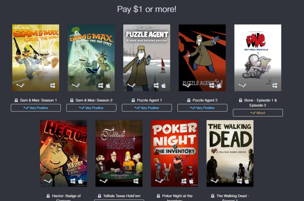 Les deux bundles qui vont nous intéresser sont Humble Telltale Bundle et Capcom Rising.