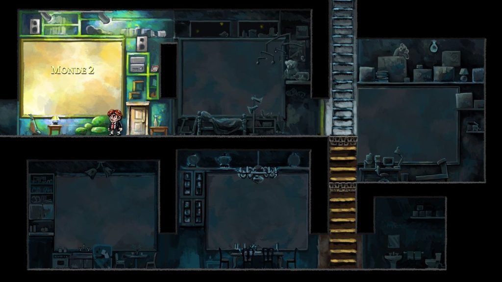 En entrant dans chaque monde, vous aurez un second lobby avec des livres, dès que vous passerez devant vous verrez apparaître la suite de l’histoire puis vous atteindrez la porte pour pouvoir entrer dans le niveau suivant.