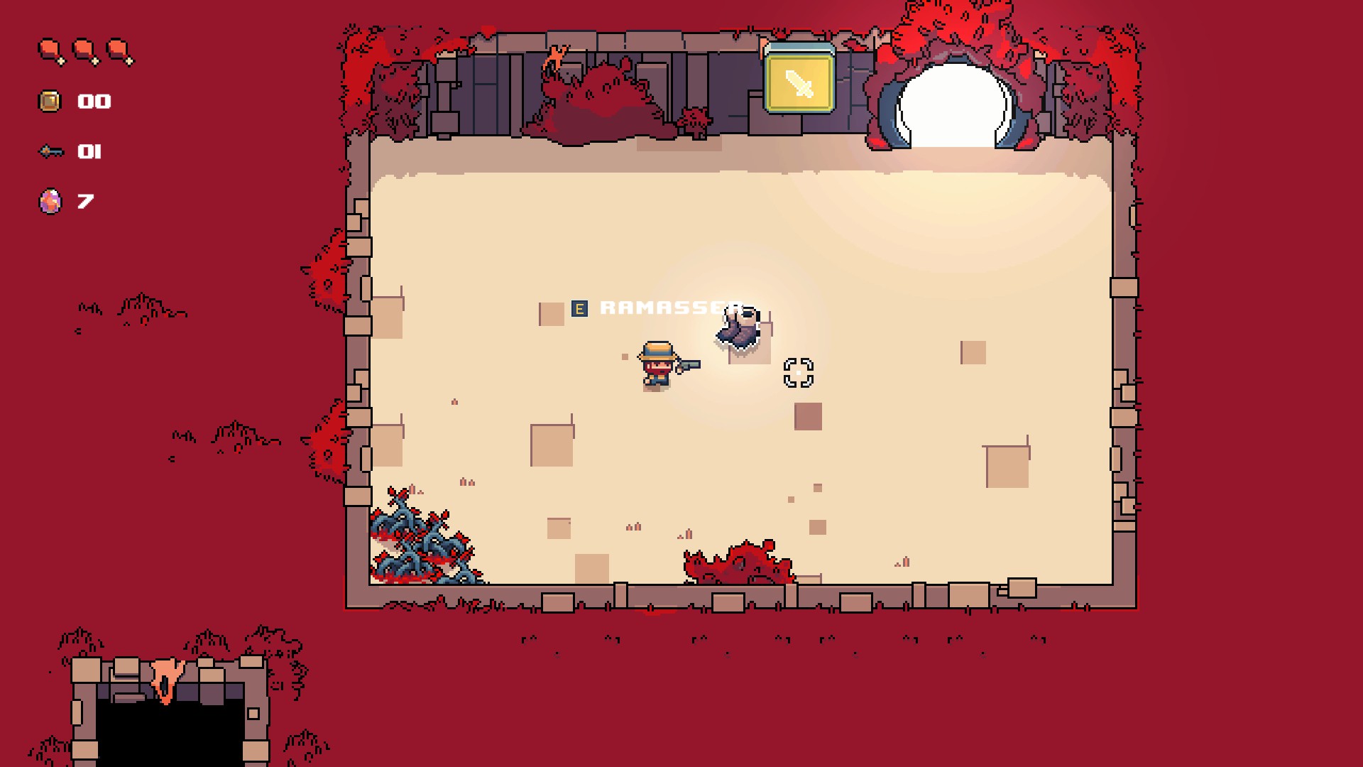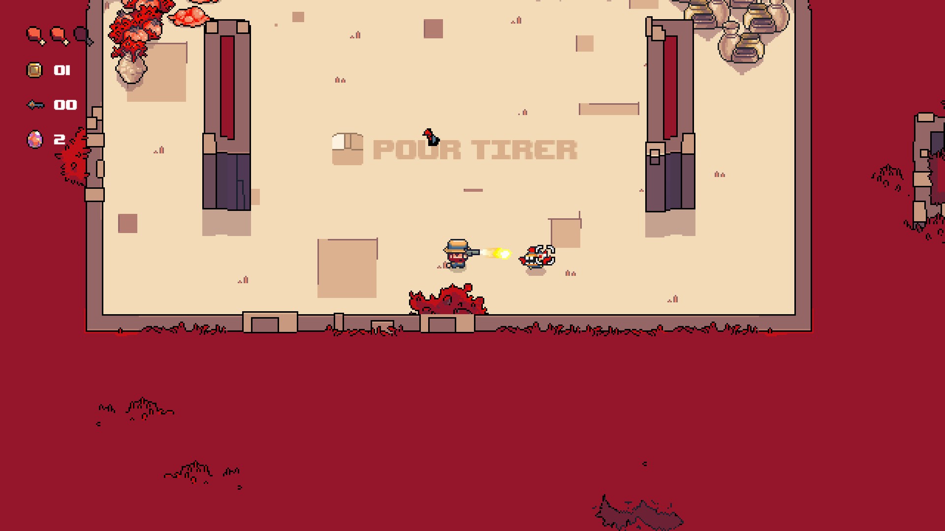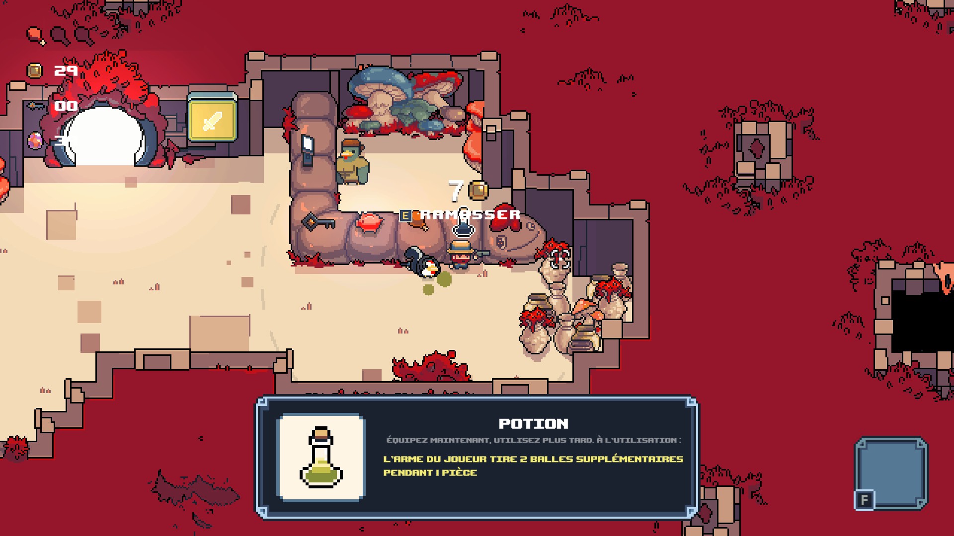 Concernant les items à récupérer, vous aurez des clés, elles vous permettront d’ouvrir des coffres, ou bien des pièces dans la salle pour obtenir des potions, par exemple. Toutefois, attention, si vous mourez, elles seront perdues, il en va de même pour les pièces que vous récolterez.
