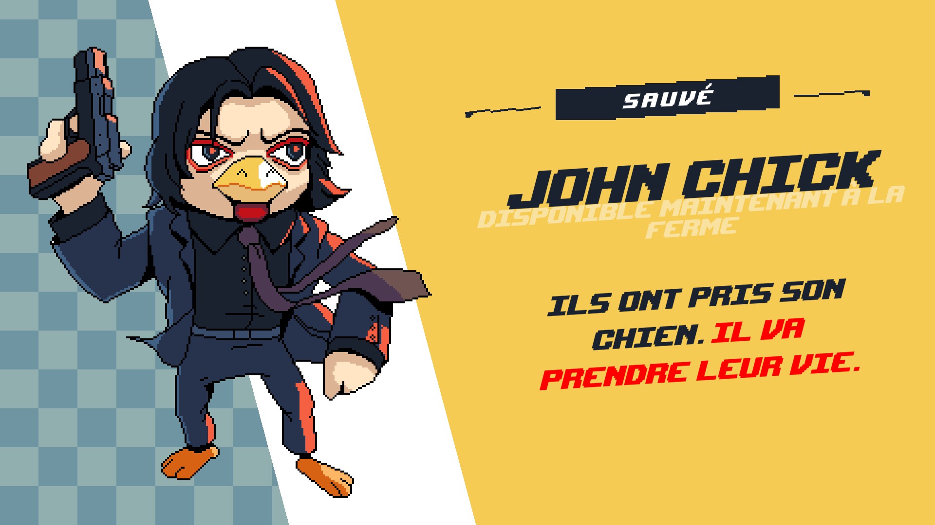 Bon, j’avoue, nos poules aussi sont un peu…. différentes, ici, par exemple, on vient de sauver « John Chick », et apparemment nos ennemis auraient pris son chien, que d’aventure sur Chichenauts.