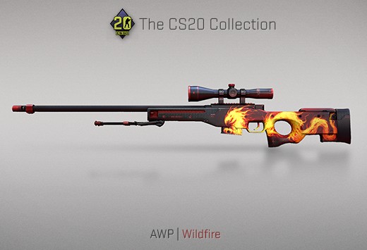 Nous voici arrivés aux deux armes rouges de la caisse CS20, l’AWP Wild Fire, sympathique, nous avions eu le droit à un serpent avec l’AWP Atheris de la dernière caisse, cette fois-ci, c’est un dragon de feu.