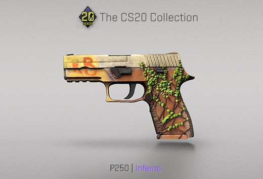 Pour fêter les 20 ans, il y a donc une arme qui porte le nom de la célèbre map Inferno, il s’agit du P250 ! Je trouve cette arme terriblement belle, on retrouve le style graphique de la map, ainsi qu’un petit « B » en référence à l’un des deux endroits où l’on peut planter la bombe.