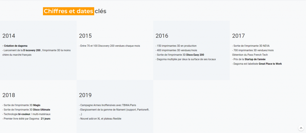 Comme par exemple, qu’il y a déjà 59 DAGOMA installées dans le nord de la France ou encore que 25 000 imprimantes 3D ont étaient vendues depuis la création de l’entreprise.