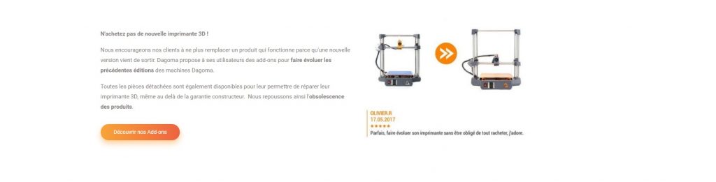 La marque est aussi contre le gaspillage, c’est pourquoi, elle propose au lieu que vous jetiez votre ancienne machine pour en acheter une nouvelle, d’acheter un « add-on », permettant ainsi d’upgrate son imprimante.