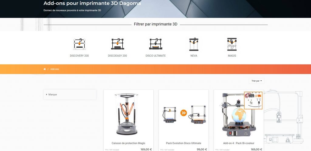 Je vous invite aussi à vous rendre sur leur boutique afin de pouvoir voir toutes les autres choses que vous pourrez acheter, dont les filaments ou encore les accessoires disponibles.