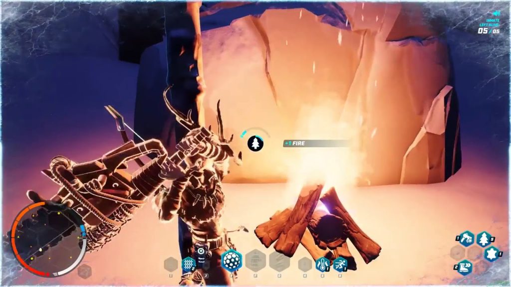 Il y a un élément dont il va falloir vous méfier, le froid, et oui vous avez une jauge qui indique si vous avez froid ou non et une fois totalement vide-vous subirez des dégâts qui vous tueront très rapidement. C’est pourquoi vous allez devoir vous crafter un feu de camp pour vous chauffer dès que cette barre est trop basse (à noter que le MJ a le pouvoir de vous envoyer un petit robot qui va vous réchauffer).