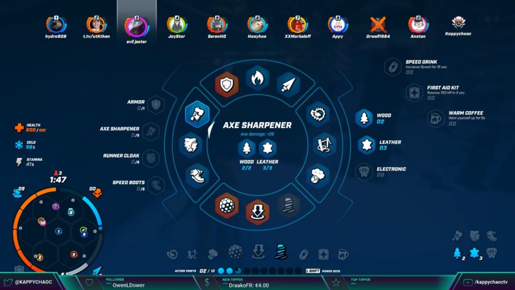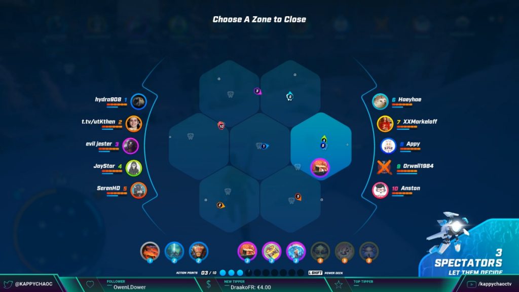 À votre arrivée dans le jeu, s’il y a un MJ, il y aura un vote pour élire le joueur préféré de la game, pour cela il faut être streamer et que vos viewers vote sur vous en cliquant sur leur écran (il faut préalablement installer l’extension sur Twitch pour le faire fonctionner). Ce joueur préféré aura de l’aide de la part du MJ, qui lui donnera des informations sur un joueur proche, sa vie ou encore lui redonnera de la vie, de l’invincibilité pour un petit temps.