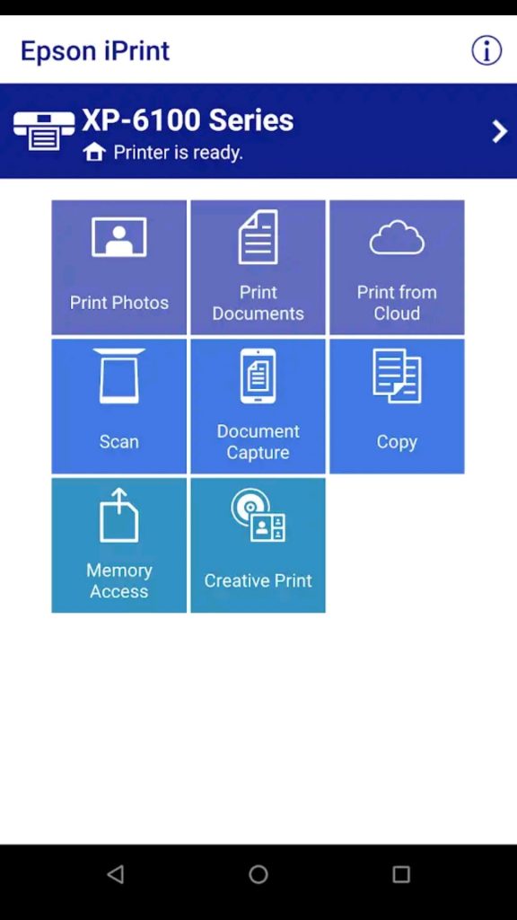 Voici quelques screens de l’application que j’ai repris depuis le PlayStore, d’où le fait que le nom de l’imprimante n’est pas le même.