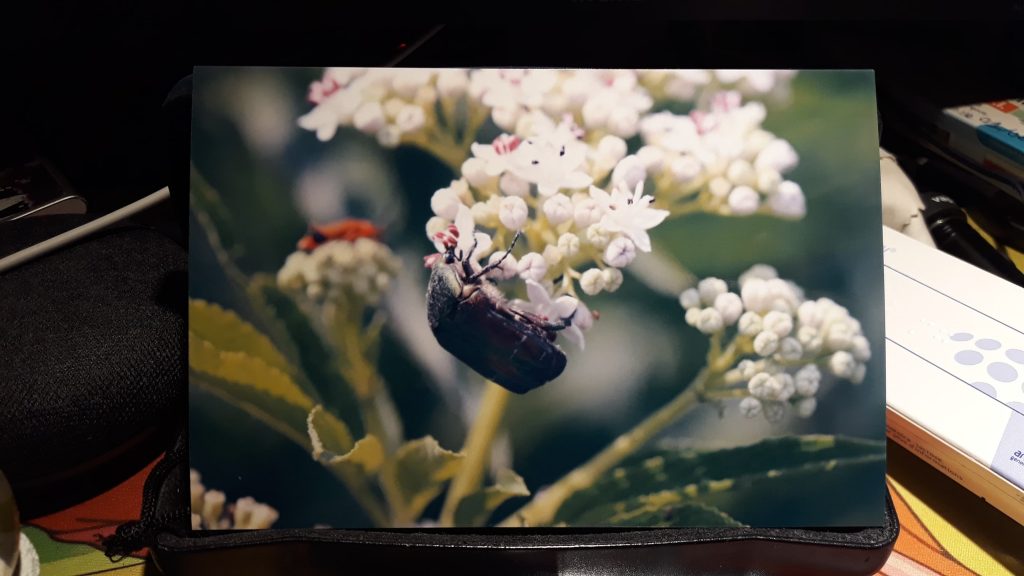 Là je viens de vous mettre des photos que j’ai développée, puis que j’ai prise en photo via mon téléphone, mais voyons ce que donne une image imprimé que j’ai ensuite scanné en 1200 DPI !