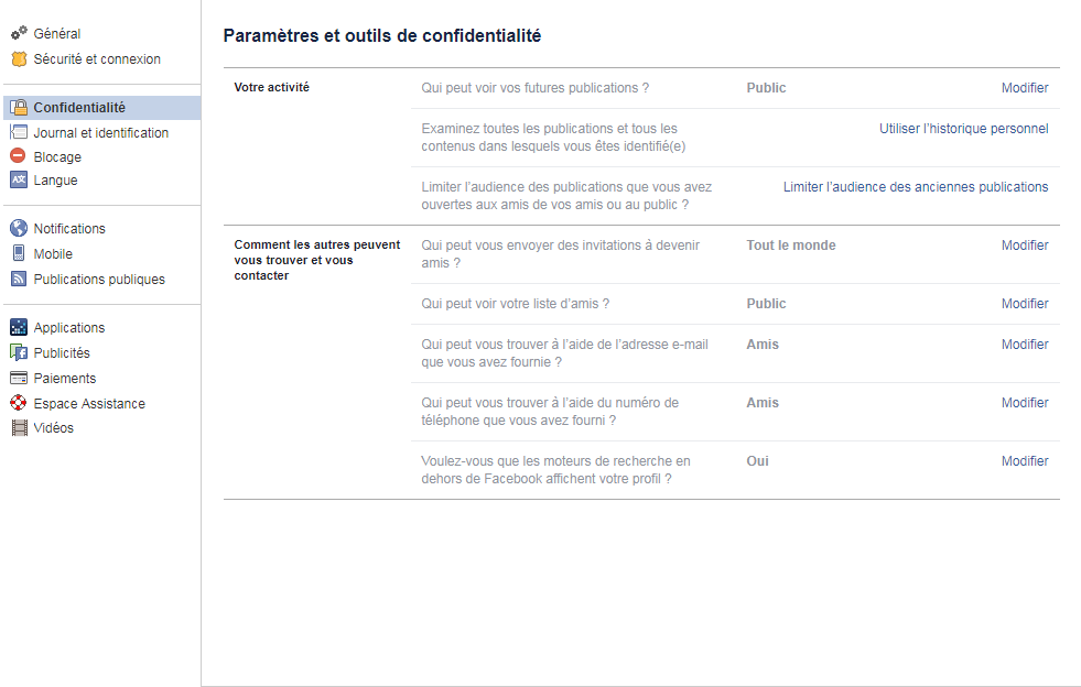 3/ Une fois localisé, un simple clique sur « modifier » vous permettra d’afficher les différentes options que vous avez, choisissez celle qui vous convient et le tour est joué !