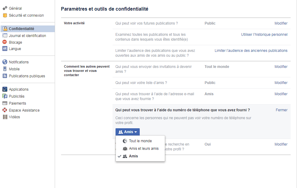 Espérons qu’à l’avenir Facebook propose une option « moi uniquement », dans le cas où nous ne souhaitons être retrouvés par personne via notre numéro de téléphone portable.