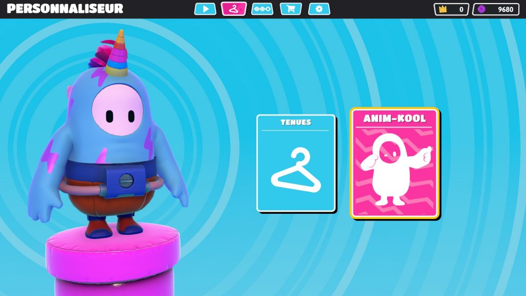 Ensuite si vous revenez en arrière, vous trouverez « Anim-Kool », qui regroupe deux catégories : les « emotes » et « les célébrations » pour vos TOP 1.