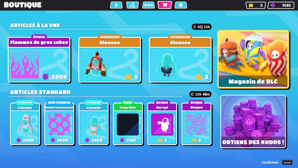 À noter : il n’existe pour l’instant aucun DLC pour avoir des célébrations ou des emotes supplémentaires, mais il est possible d’en acheter dans la partie « boutique » du jeu avec de la fausse monnaie, ou des couronnes.