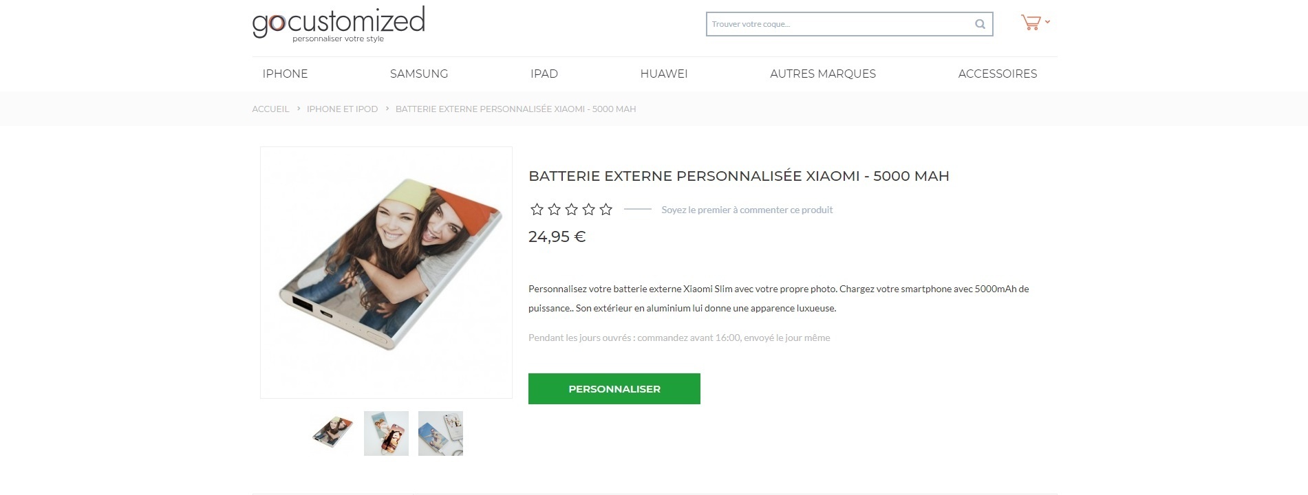 Quelques informations complémentaires que nous donne GoCustomized sur sa batterie externe personnalisée :