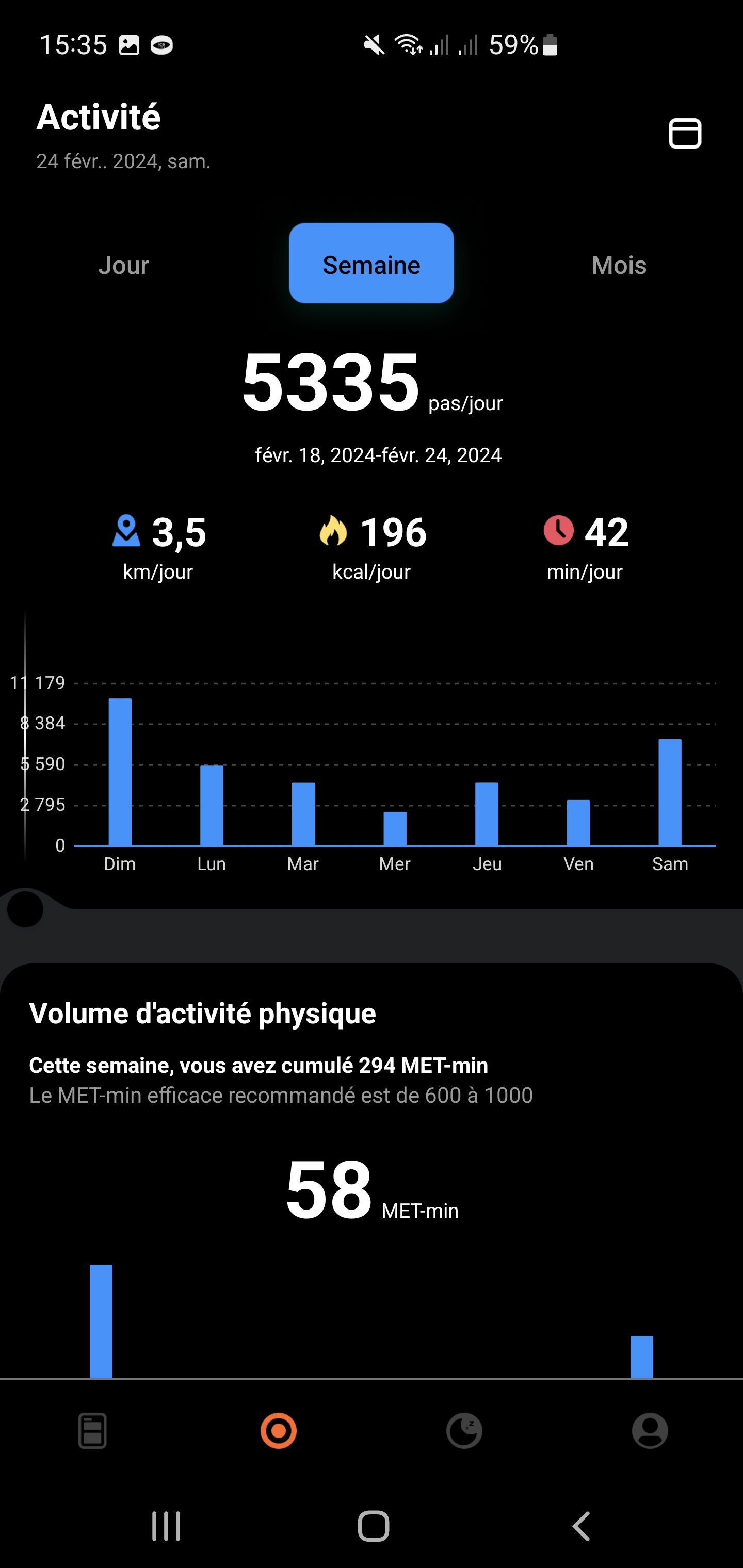 À noter : en scrollant vers le bas, c’est ici que vous verrez apparaître aussi votre sommeil, cardio, Sp02, VFC ou encore Stress. Ne vous en faites pas si vous ne comprenez pas, dans chaque onglet, appuyez simplement sur chacun d’entre eux et vous aurez toutes les explications nécessaires !
