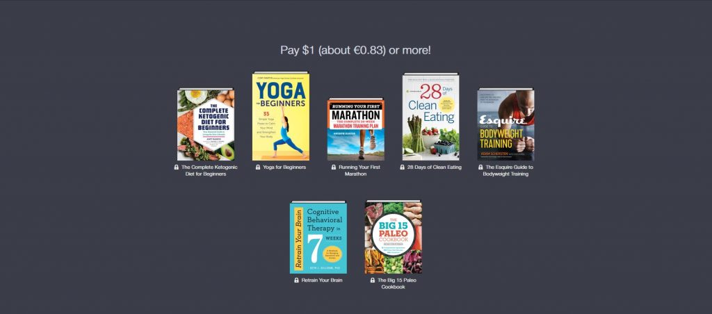 Certes cette diversité n’est pas un problème, au contraire cela fait plaisir de voir qu’il ait par exemple des livres pour apprendre à coder, des jeux mobiles pour s’occuper et des jeux vidéos pour s’éclater malheureusement depuis maintenant un petit moment je remarque que nous perdons petit à petit le HumbleBundle que nous aimions tant à l’époque, les bundles de jeux vidéos steam diminue pour laisser place à des bundles books absurdes qui sortent des jeux vidéos avec par exemple, le dernier bundle books « Work it out » qui n’est rien de plus que des livres sur la santé ?! Le yoga, la manière de manger sereinement et j’en passe !
