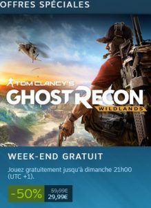 Cette fois-ci c’est bien deux jeux que je vais vous présenter que vous allez pouvoir télécharger et tester dès maintenant jusqu’à Dimanche 21h00 sur la plate forme Steam et vous allez voir que ce n’est pas des petits jeux, il s’agit cette semaine de Tom Clancy’s Ghost Recon® Wildlands mais aussi de Day of Infamy.