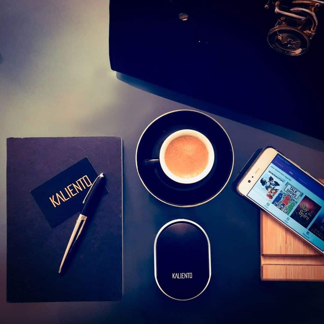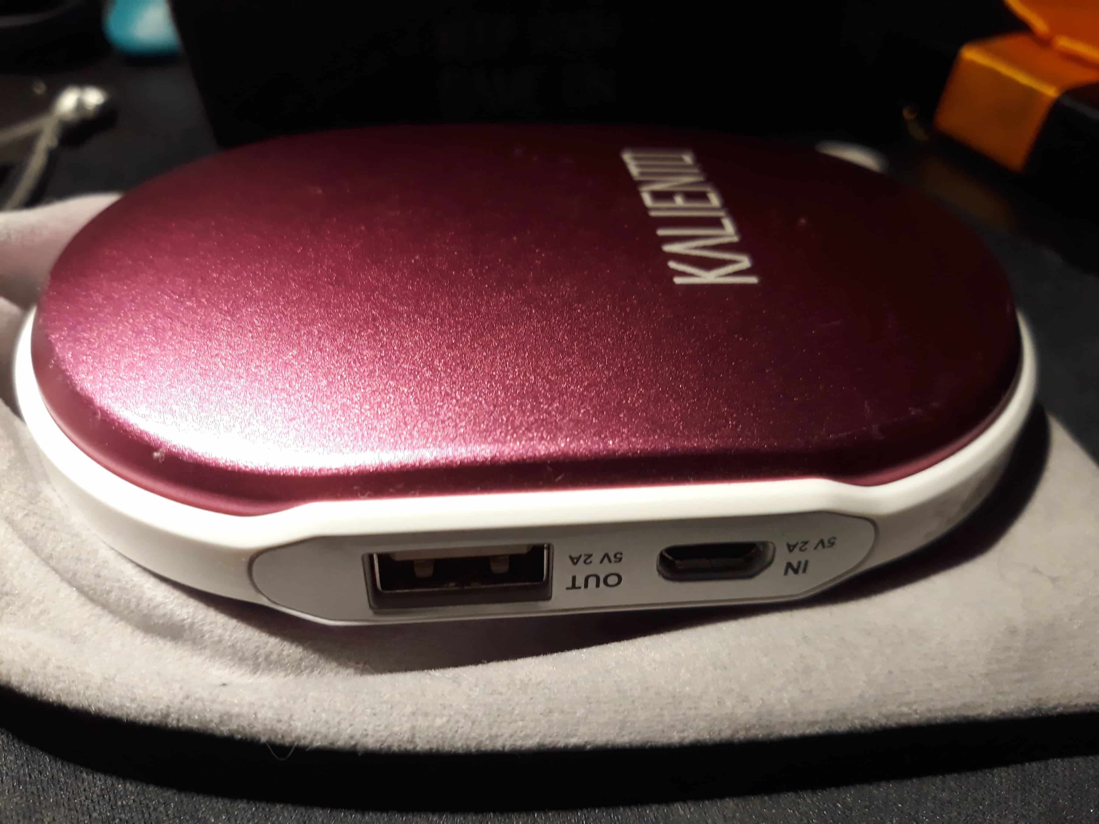 Nous avons déjà une magnifique boite en carton dur dans lequel on trouve d’abord le Kaliento, 1 Bracelet de poignet, un câble USB et pour terminé, une magnifique pochette en tissue dans lequel mettre votre chauffe main.