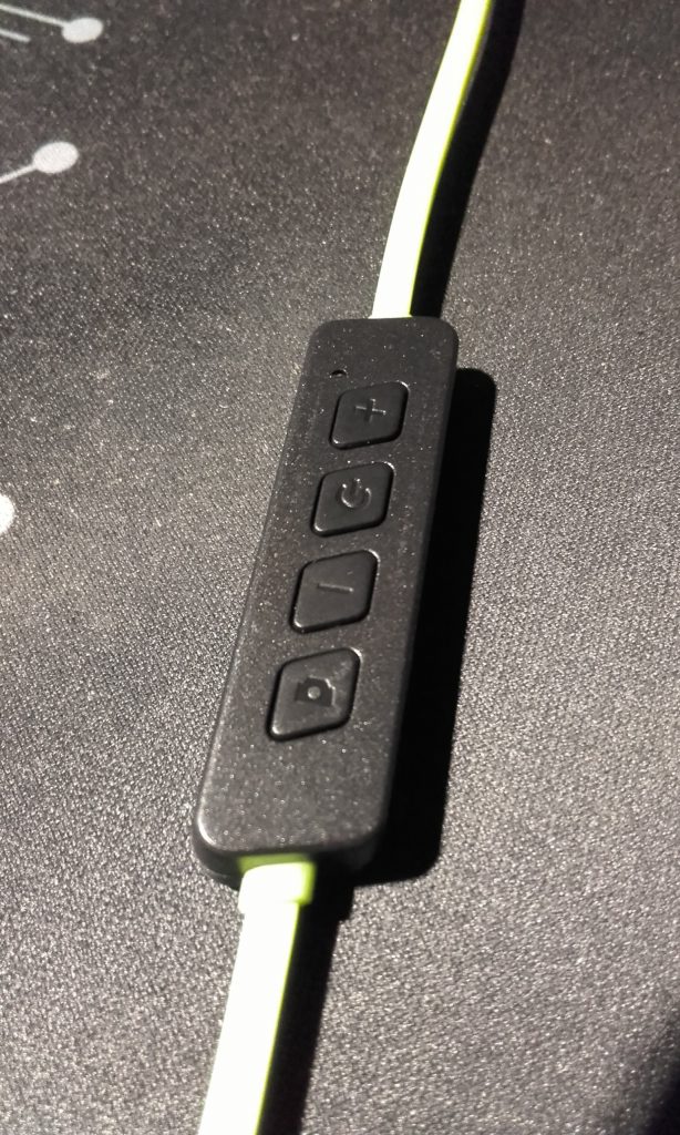Revenons aux écouteurs, vous retrouverez sur l’un des deux côtés des écouteurs un boîtier avec plusieurs boutons, évidemment le bouton « + » et « – » permettent de faire augmenter ou baisser le son, le bouton avec « la main » permet d’allumer les écouteurs, de l’éteindre ou encore de se connecter en Bluetooth via un téléphone.