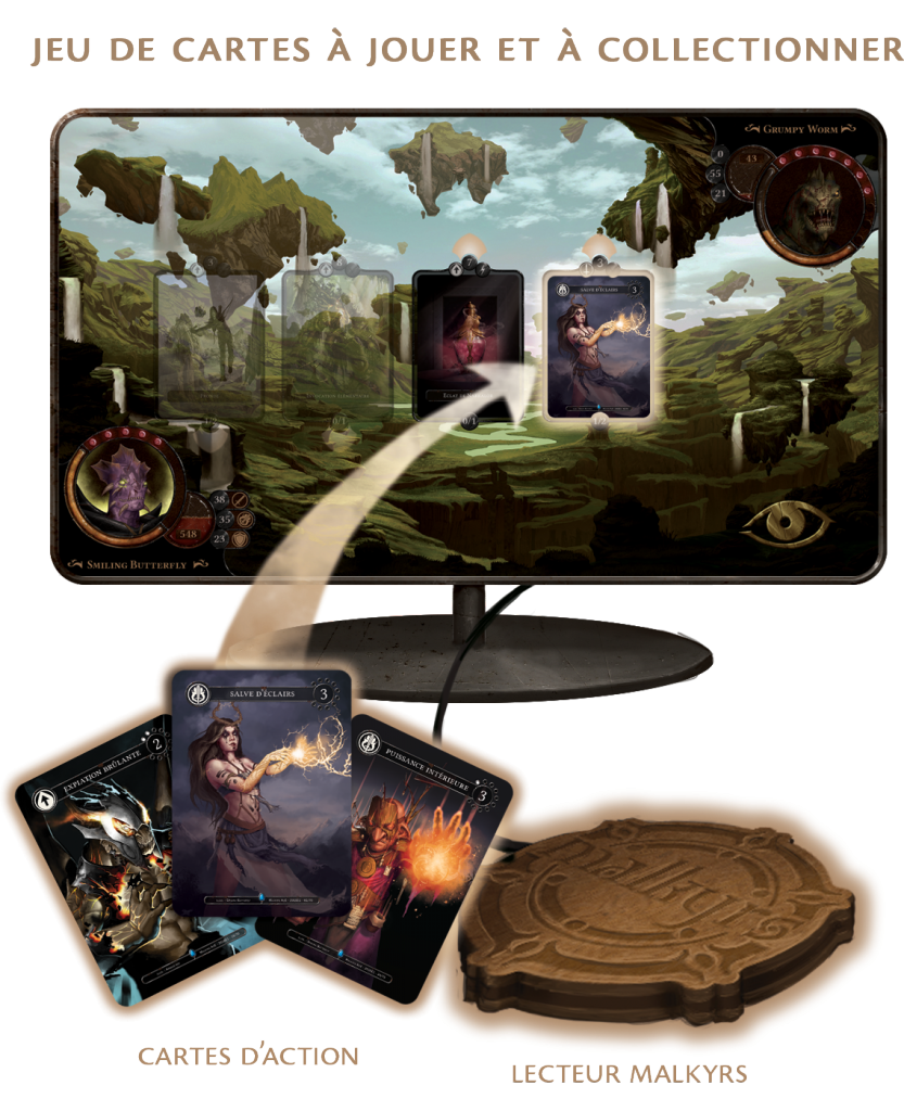 Malkrys et un jeu de Malkyrs studio qui est une entreprise française, ce qui fait aussi que j’ai un petit coup de cœur pour ce jeu qui réinvente la façon de jouer au jeu de cartes du style HearthStone.