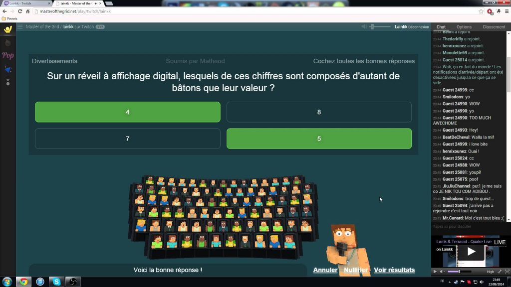 Le rôle du présentateur ne s’arrête pas là, il a la possibilité de « nullifier » ou de valider cette question via le bouton « voir les résultats ». Une fois validés, les candidats garderont ou perdront un cœur pour chaque mauvaise réponse à une question.