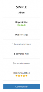 Passons à l’offre « Simple », il s’agit d’une offre qui est à 3€/an avec :