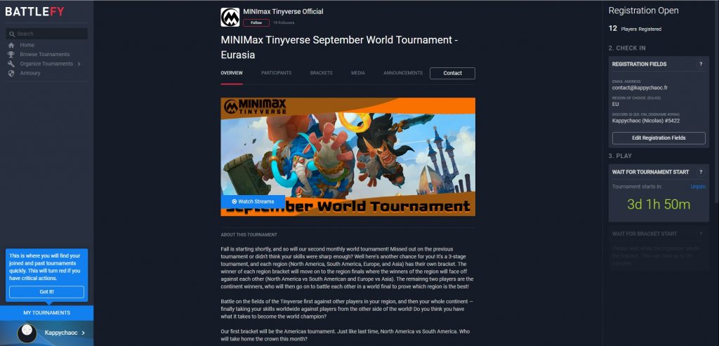 Viendra la semaine qui suit, la finale entre le gagnant de l’Eurasia et des Amériques, ce grand match final sera en direct de la chaîne Twitch du jeu MINImax Tinyverse !