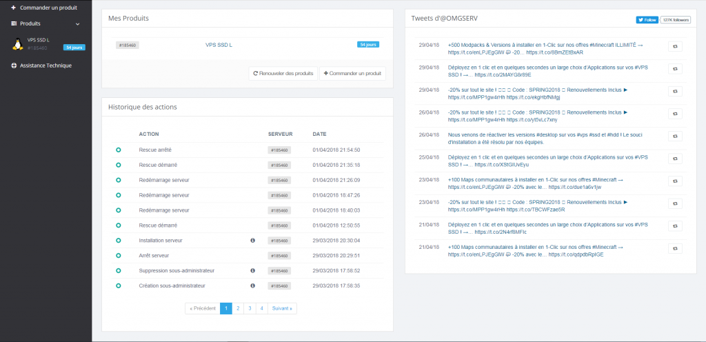 Je vous invite fortement à les suivre si vous êtes client chez eux, car ils informent en tant réel des maintenances qu’il y a sur leurs serveurs, mais aussi les nouveautés désormais présentent sur leur site et pour vos serveurs de jeux ou votre VPS.
