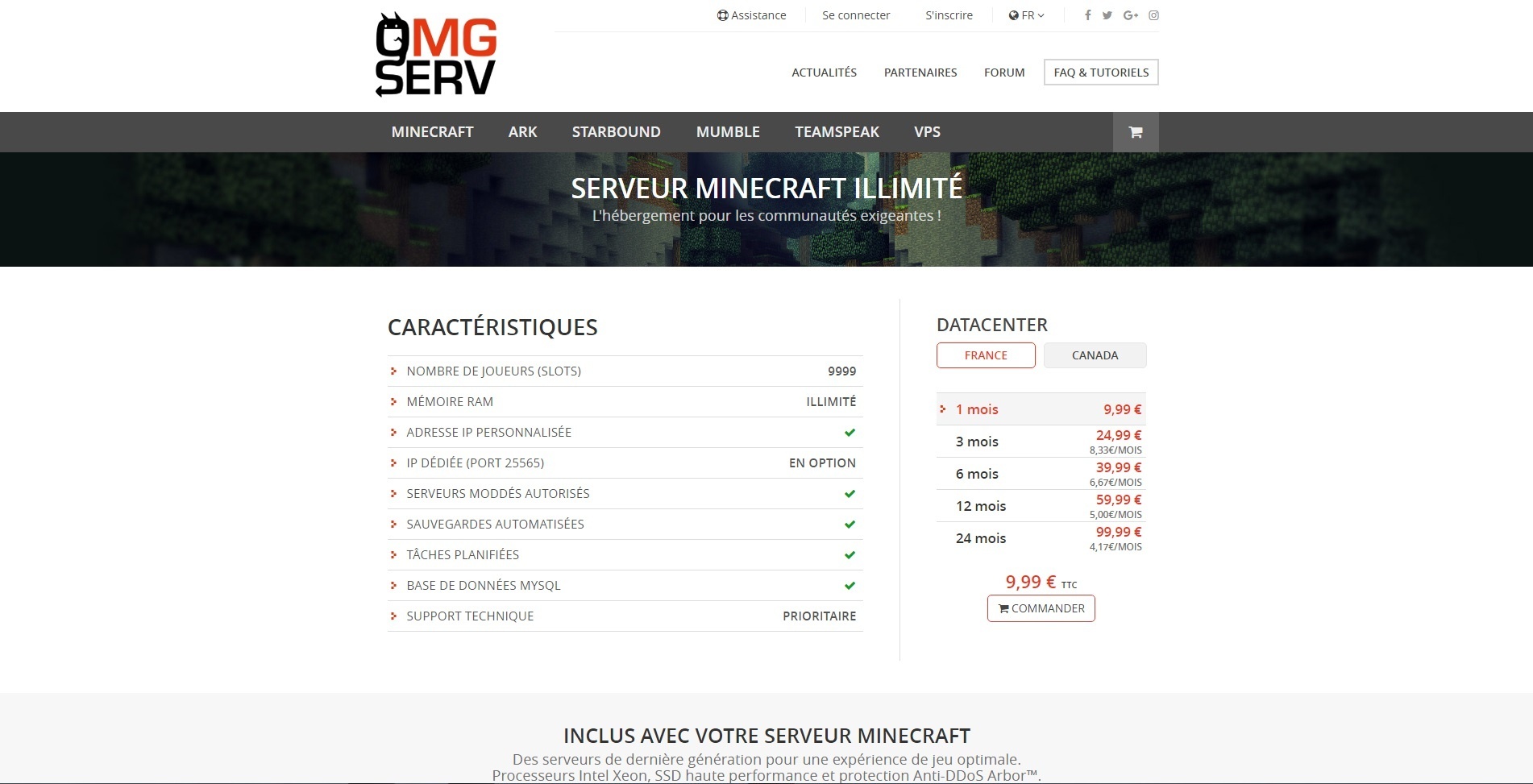 En ce qui concerne le tarif de cette offre, vous devrez dépenser 9,99€ pour 1 mois ou encore 24,99€ pour 3 mois, les tarifs au Canada sont quasi identique, sauf qu’il faudra compte 5€/mois supplémentaire pour le datacenter.