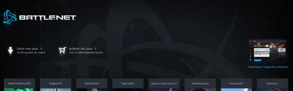 Rien de plus simple pour l’installation, rendez-vous directement sur le site (en cliquant sur l’image ou sur le lien ci-dessus) puis comme sur l’image il vous suffit de cliquer juste à droite sur « télécharger l’application Blizzard » pour ensuite pouvoir vous le procurer gratuitement, par la suite il vous faut vous inscrire sur le site pour pouvoir vous loggin.