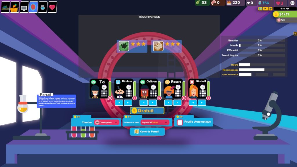Tout en haut à gauche, vous aurez accès à un portail dans les catégories, il s’agit de l’endroit où vous enverrez vos chercheurs faire des trouvailles d’ossements, et d’autres choses utiles pour le craft d’un œuf.
