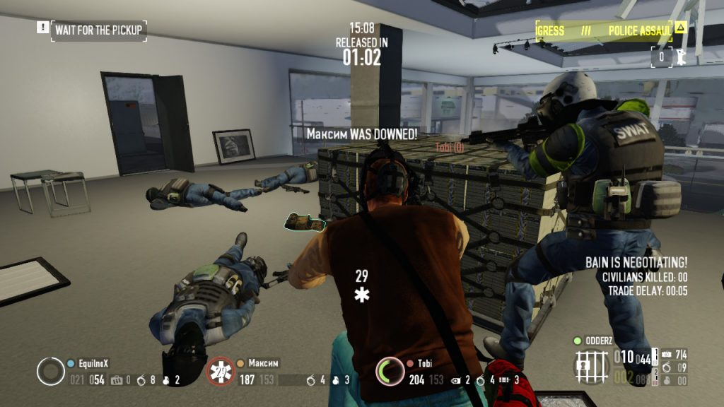 Oh, j’ai failli oublié, si vous vous faites tuer vos coéquipiers pourront venir vous relever, mais si par malheur ils n’arrivent pas avant la fin du compteur, vous serez envoyé en prison et pour en sortir il n’existe que deux solutions, soit échanger un otage contre la personne en prison ou alors que le reste de l’équipe reste en vie (au moins un) et au bout d’un long moment vous serez libéré !