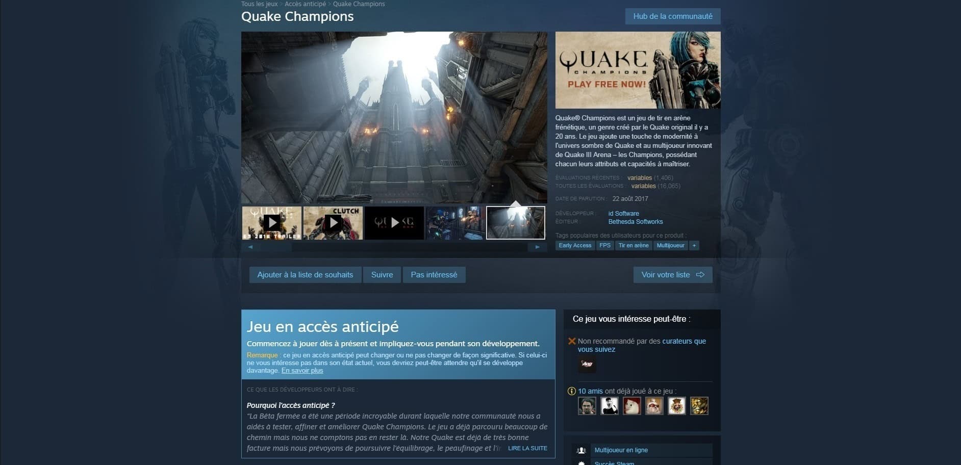 À commencer par Quake Champions, il s’agit d’un jeu de tire qui se joue en multijoueur et le tout dans une arène, vous aurez la possibilité de choisir un personnage ayant des attributs et des capacités unique et ce sera pareil pour tous les autres personnages.