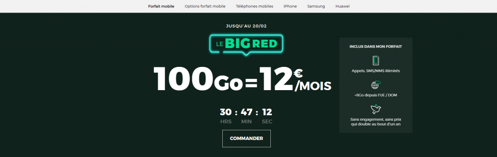 BIG RED est une promotion à durée limitée donc vous ne pourrez pas en profiter longtemps, ni souscrire une fois la date expirée !