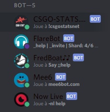 Passons donc à la deuxième partie de cet article les bots, beaucoup aime s’en servir pour plusieurs raisons, moi ils me permettent de mettre de l’ambiance, faire un « mini game » ou encore de voir les stats de mes camarades sur le jeu CS:GO.