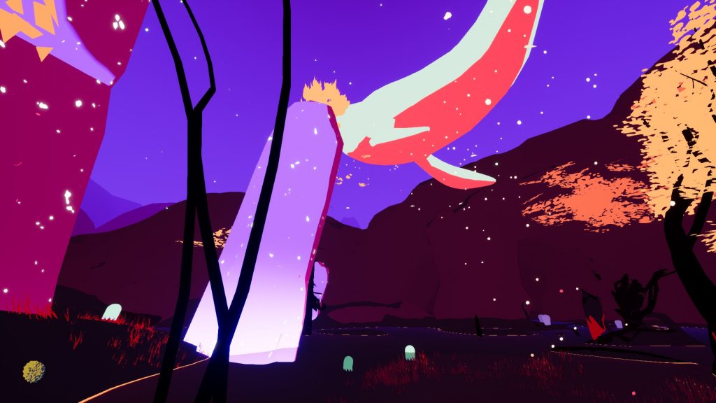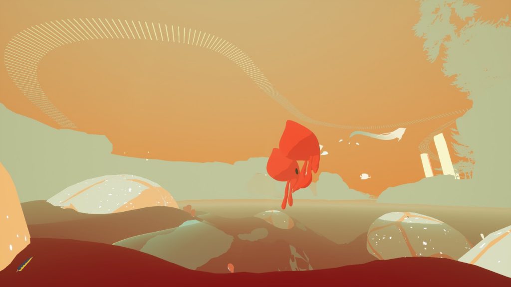 Puis, vous tomberez dans Shape Of The Worldd, sur plusieurs nouveaux compagnons au fil des mondes comme par exemple cette sorte de goutte d’eau orange avec des pattes qui volent et à qui j’ai réussi à planter une graine dans la tête sans le vouloir ! Puis, il y aura des sortes de poissons volants, de couleur blanche et transparente.