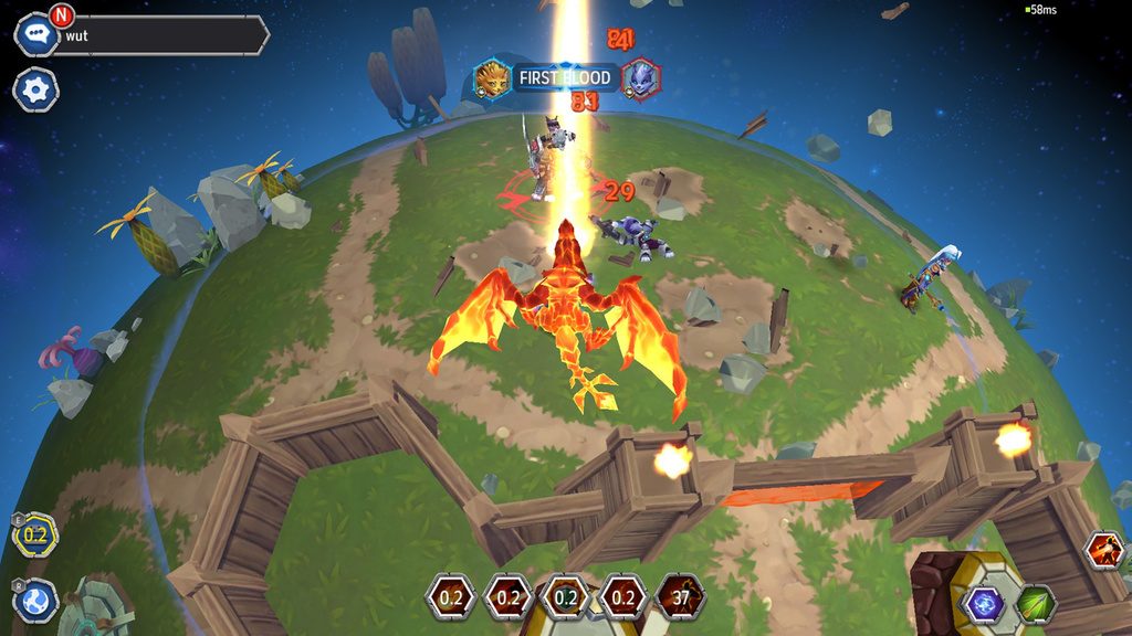 Comme on peut le constater jusqu’à présent le jeu est vraiment sympathique et surtout très « mignon », mais ce n’est pas tout et vous allez comprendre pourquoi je dis que c’est un drôle de mélange, nous allons pour ça nous rendre directement dans une arène pour y défier d’autres joueurs. Pour cela, rien de très compliqué cliquez simplement sur les deux épées à l’accueil.