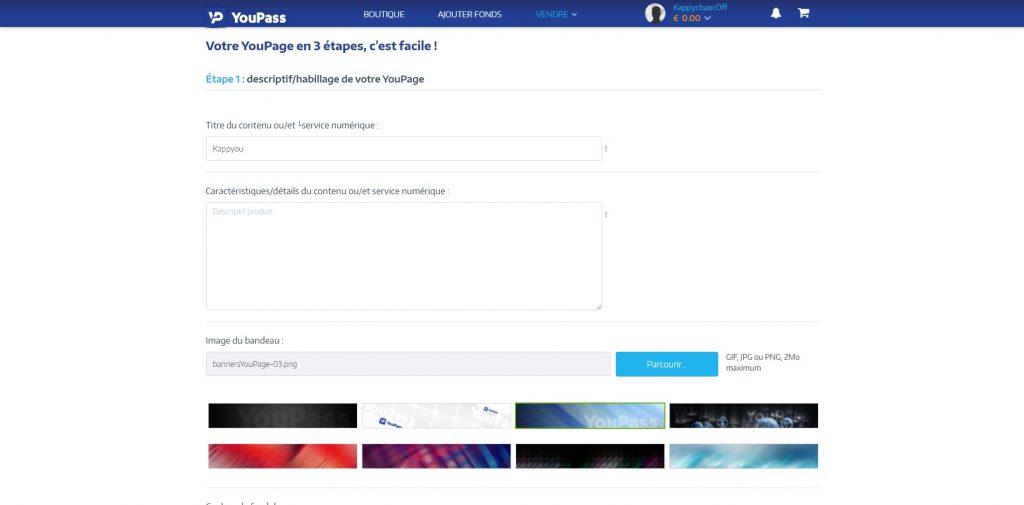 On ne s’arrête pas en si bon chemin, car le site YouPass.com a d’autres fonctionnalités comme la possibilité d’avoir sa propre page de paiement.