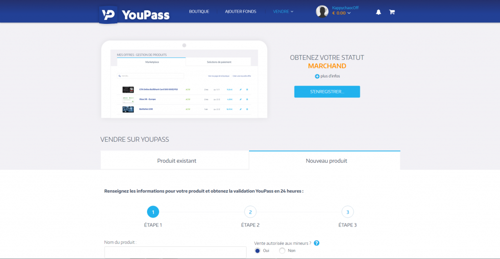 Dès que vous aurez tout fait, il vous suffira de descendre un peu pour trouver le formulaire permettant de soumettre un produit à la vente, patientez 24 heures avant de recevoir une réponse du staff de Youpass et hop le tour est joué.