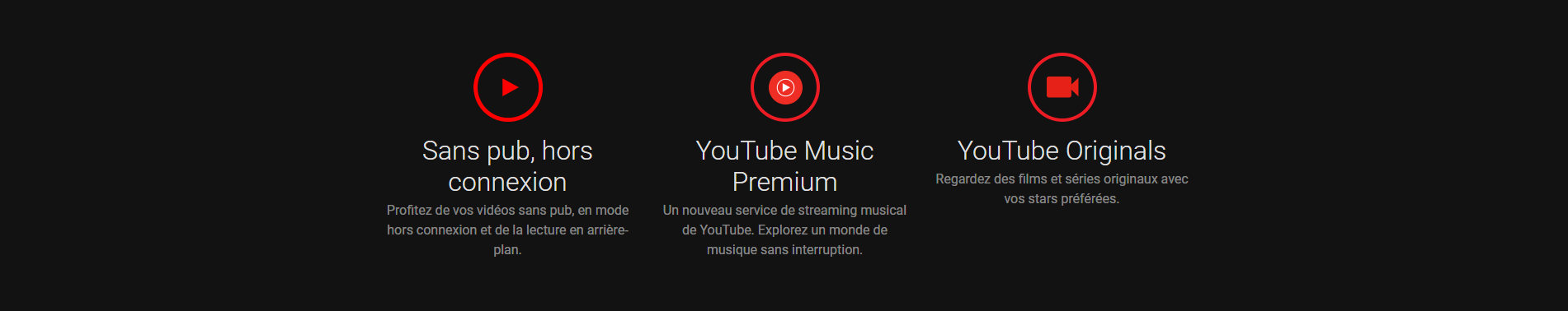 Évidemment ce n’est pas tout, vous aurez aussi accès à plein d’autres choses comme par exemple Music Premium, la nouvelle plateforme de YouTube uniquement pour les musiques, dans cette offre vous aurez la possibilité d’écouter toutes les musiques disponibles sans aucune publicité, pouvoir écouter vos musiques hors connexion (téléchargement des musiques) ou encore avec l’écran verrouillé.