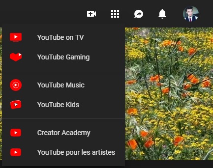 Maintenant j’ai une petite astuce pour vous, si vous souhaitez accéder facilement à toutes vos fonctionnalités, dont celle de YouTube Music Premium sans quitter YouTube, il vous suffira de cliquer sur les 9 petits points présents en haut à droite du site, vous retrouverez le raccourci pour accéder à toutes vos nouvelles fonctionnalités !